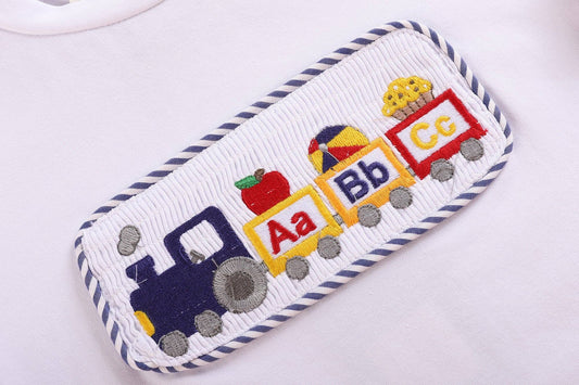 Alphabet Train Smocked Shirt and Blue Striped Shorts Set