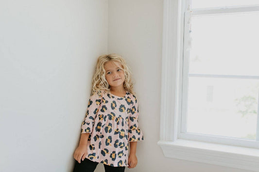 Kids Claire Pink Leopard Print Fall Twirl Dress