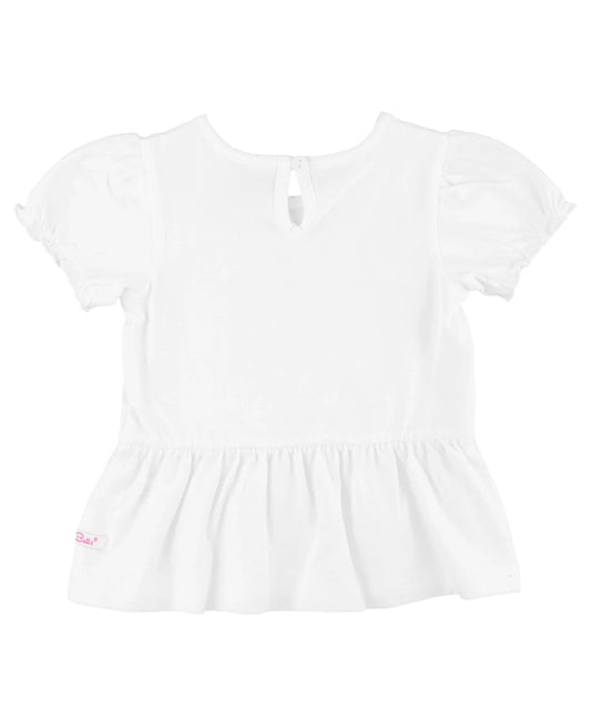 Ruffle Butts White Knit Puff Sleeve Peplum Top
