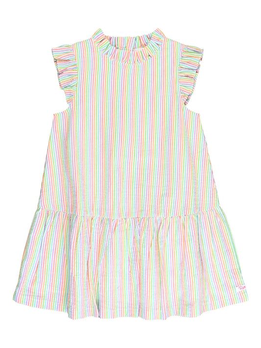 Ruffle Butts Rainbow Seersucker Mock Neck Flutter Dress