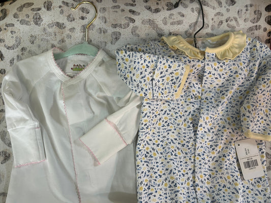 Sleepers, Bubble outfit, Magnetic gown set, Silver Rattle, Sandals- Eason Baby