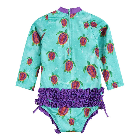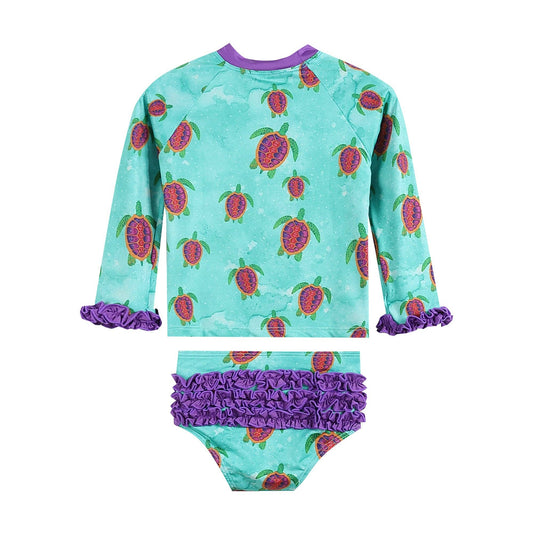 Turquoise Turtle Ruffle Rashguard 2 pc Set