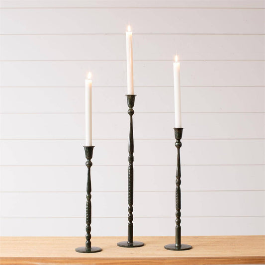 Hand Forged Metal Candle Holders, White (Set Of 03)