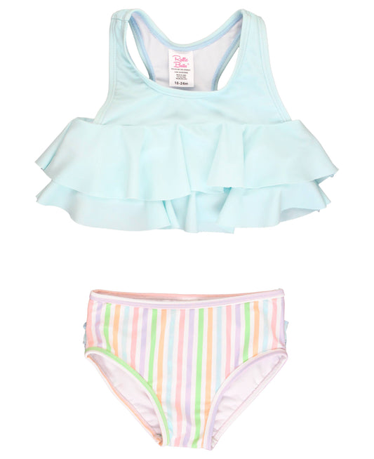 Rainbow Dream Stripe Tween Cropped Rash Guard Bikini 3pc Set