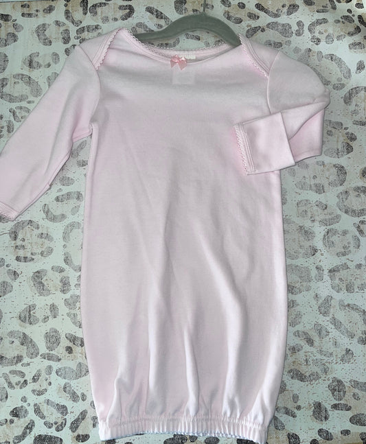 Pink Appliqué Gown, White Monogrammed Bib, & Pink Monogrammed Bib