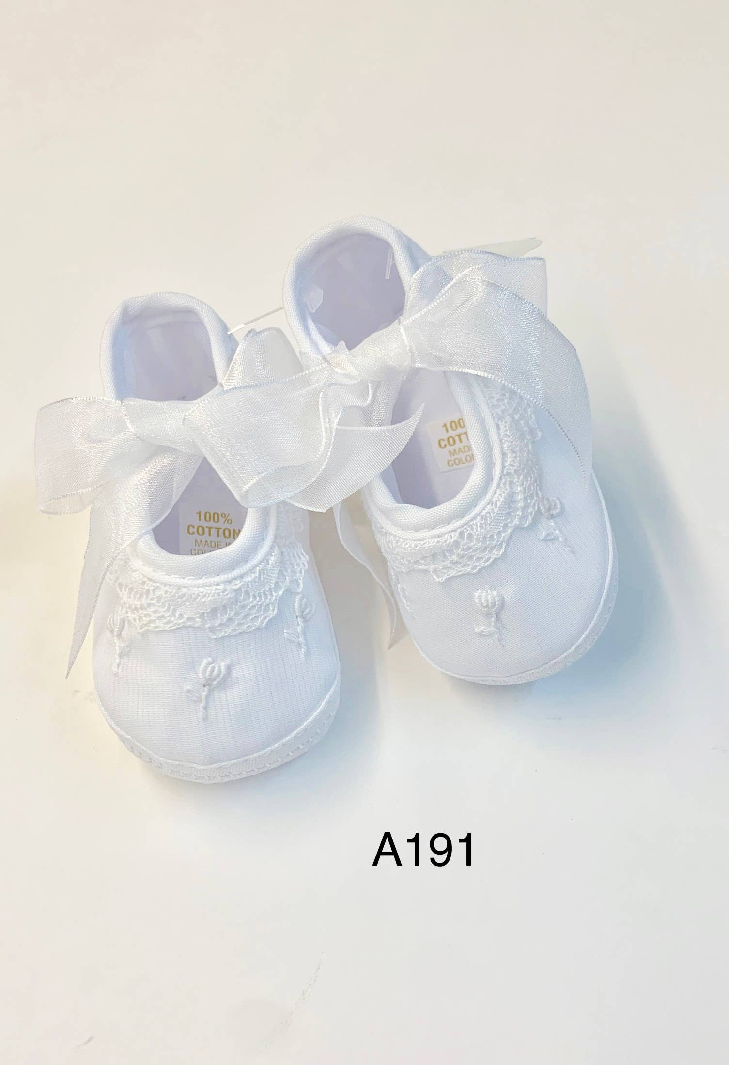 Sweet baby girl white shoes with embroidery. 100% cotton pique. Available sizes 0-1-2-3