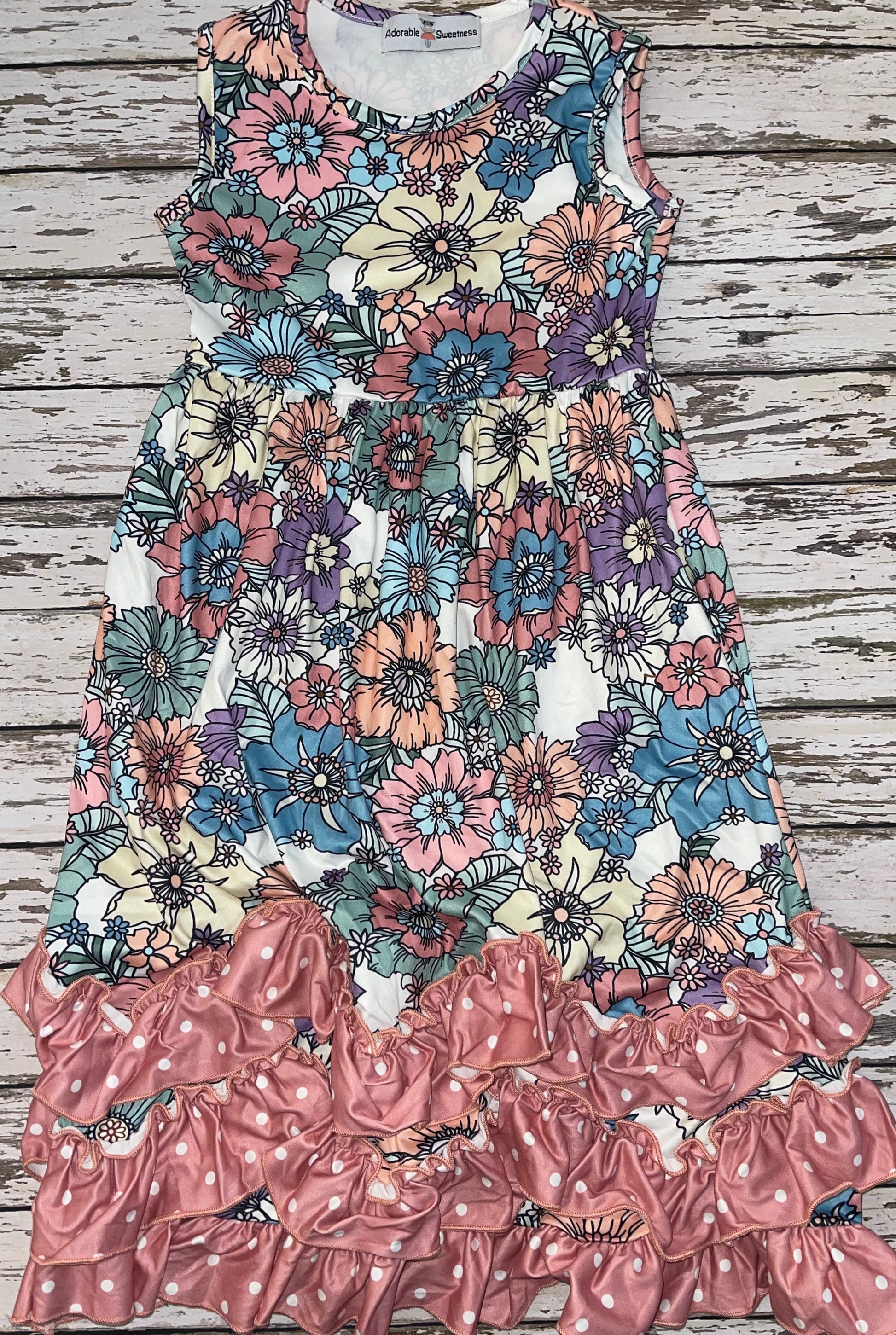 Adorable Sweetness Kids Pastel Floral 3 Ruffle Spring Summer Easter Dress