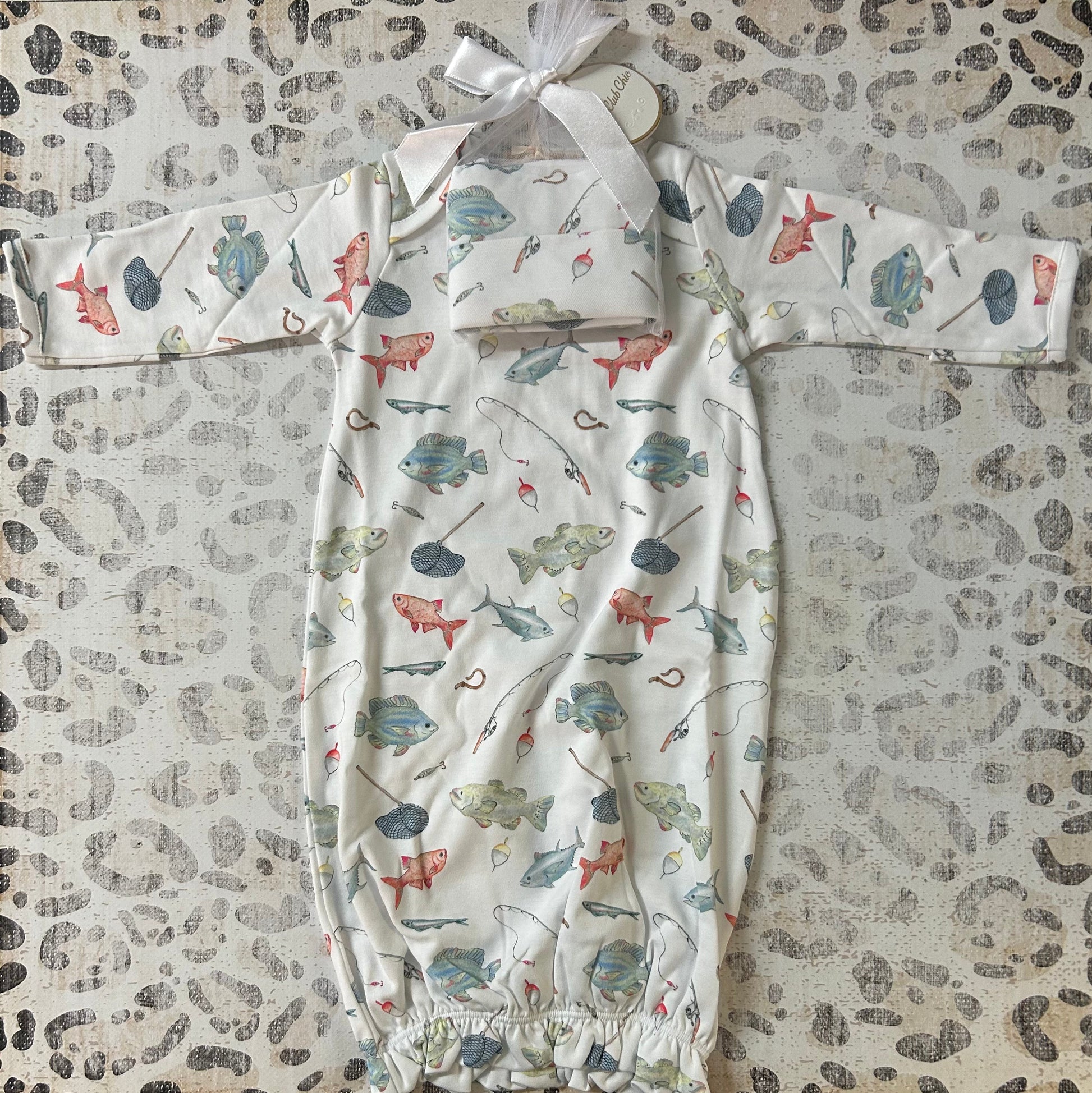 Baby Club Chic Fishing Day Printed Gown & Hat Set