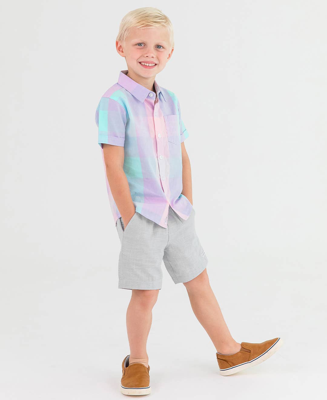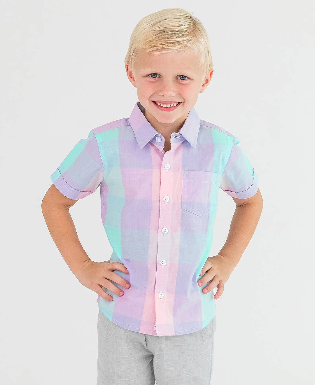 Cotton Candy Plaid Short Sleeve Button Down Shirt