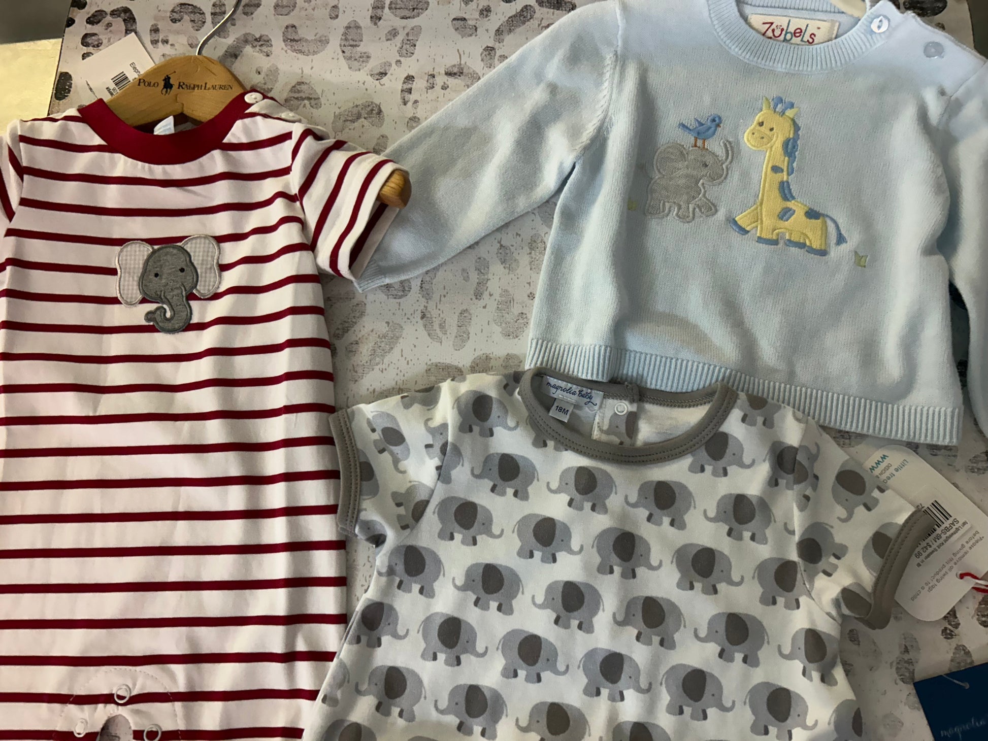 Elephant romper, giraffe sweater, elephant bubble- Klimp Baby