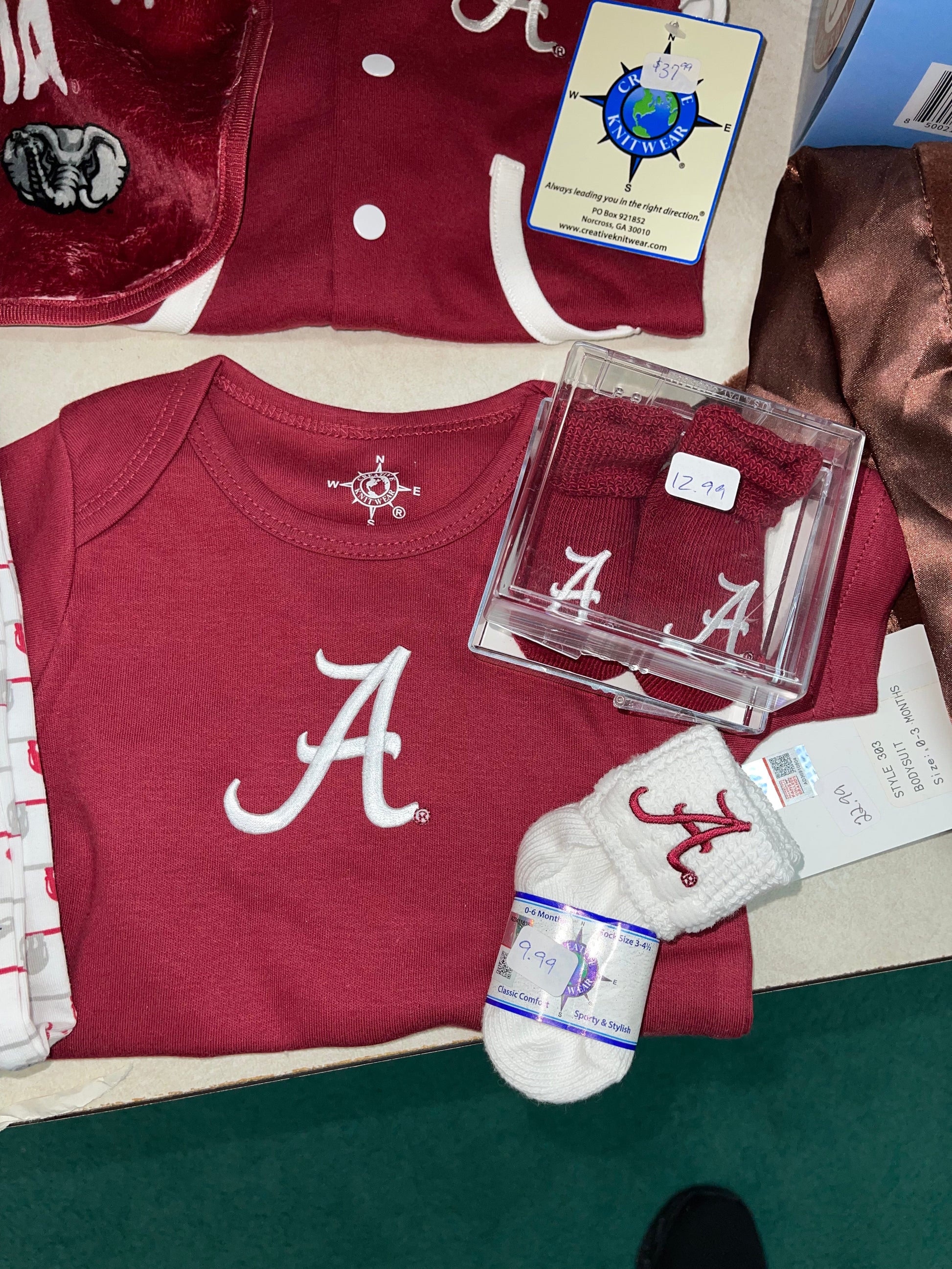 Alabama Onesie, White Alabama Socks, Crimson Socks
