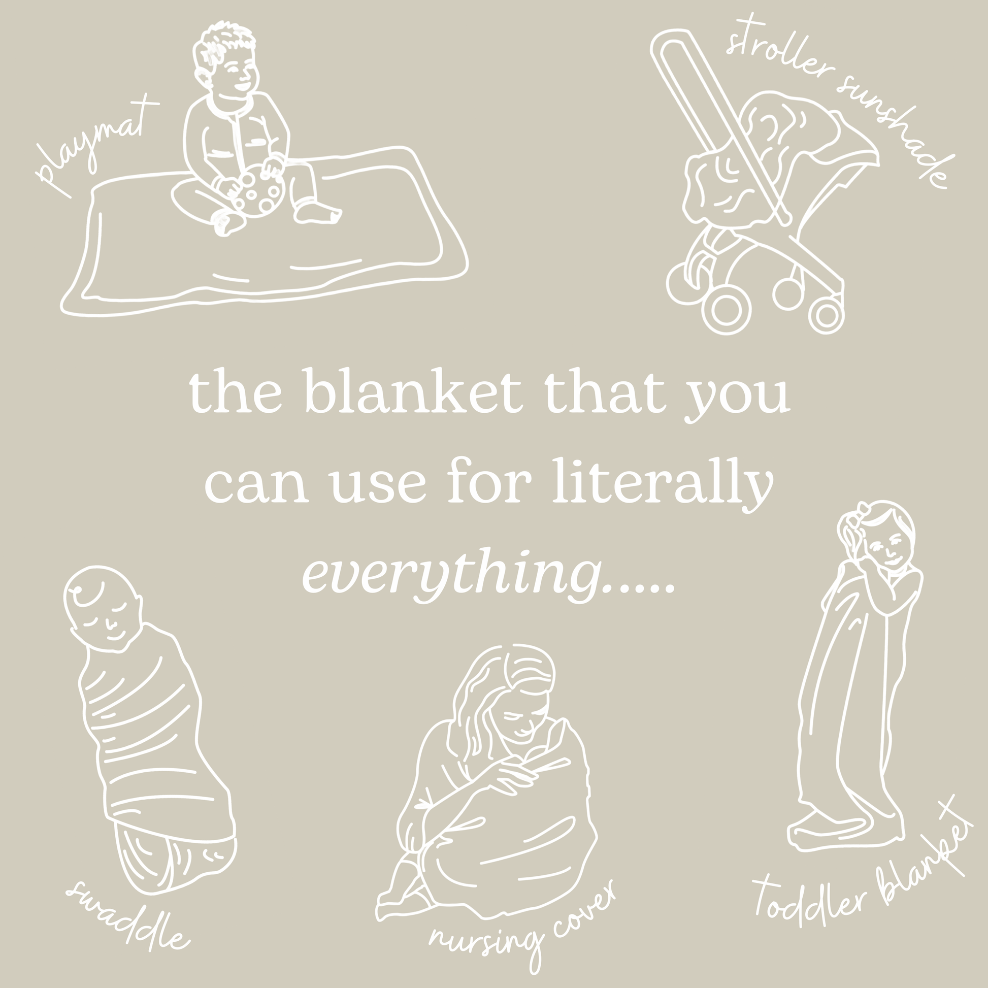 Not only is our Everything Blanket incredibly soft, but it's also versatile. Uses include: swaddle blanket, play mat, car seat cover, nursing cover and toddler blanket. The possibilities are endless with this multi-functional essential. It is packaged in an beautiful box that makes it a delightful gift!