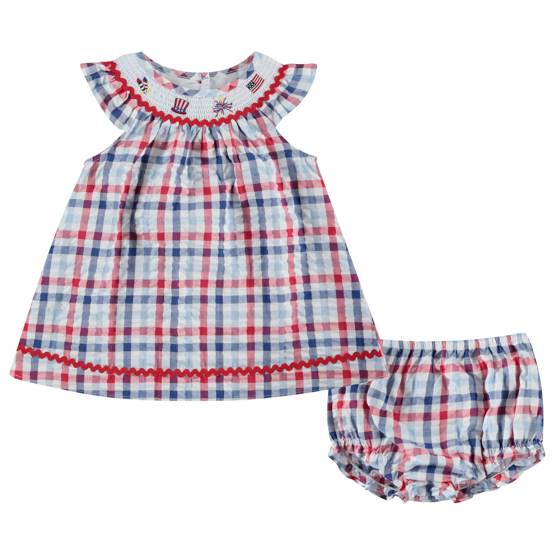 Good lad newborn/infant girls smocked July 4th seersucker dress with matching panty.