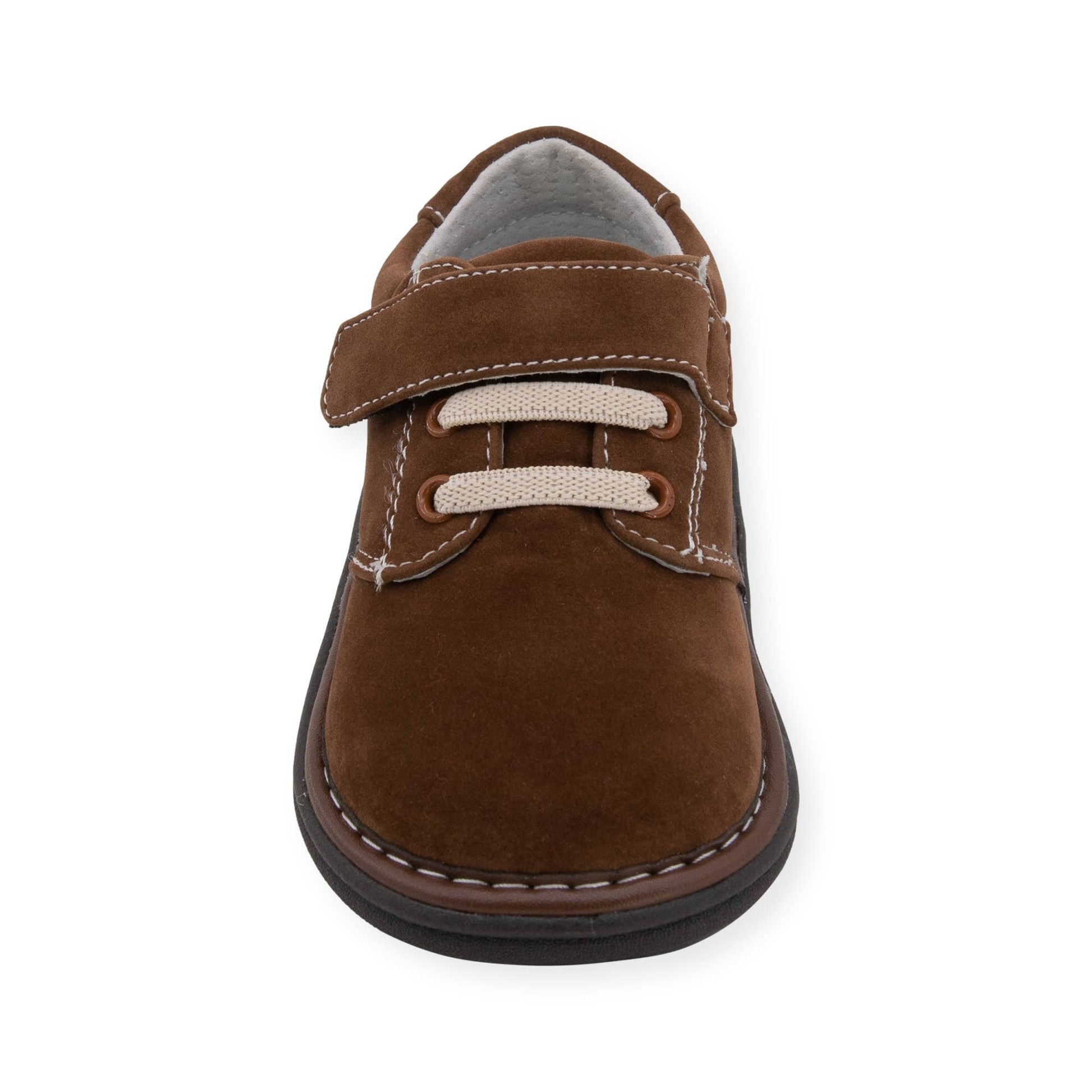 Casual and comfortable in a versatile brown color. Jacob is one of our most popular shoes. Made with no-tie elastic laces and adjustable hook and loop straps for the perfect fit. This shoe has padded heel collars and supportive footbeds. He’ll enjoy playing in them and you’ll love their durability and convenient on/off style.