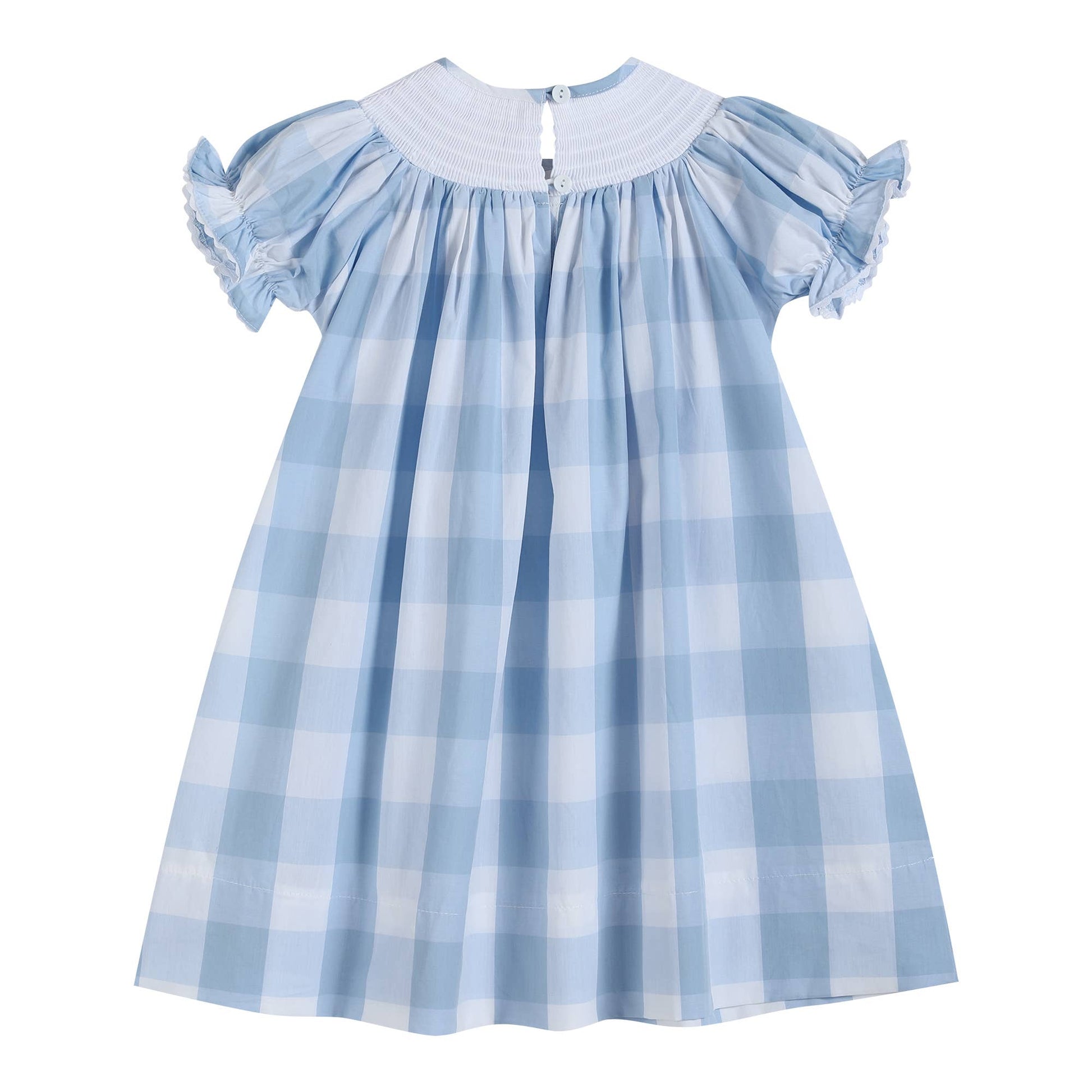 Light Blue Large Gingham Smocked Bishop Dress