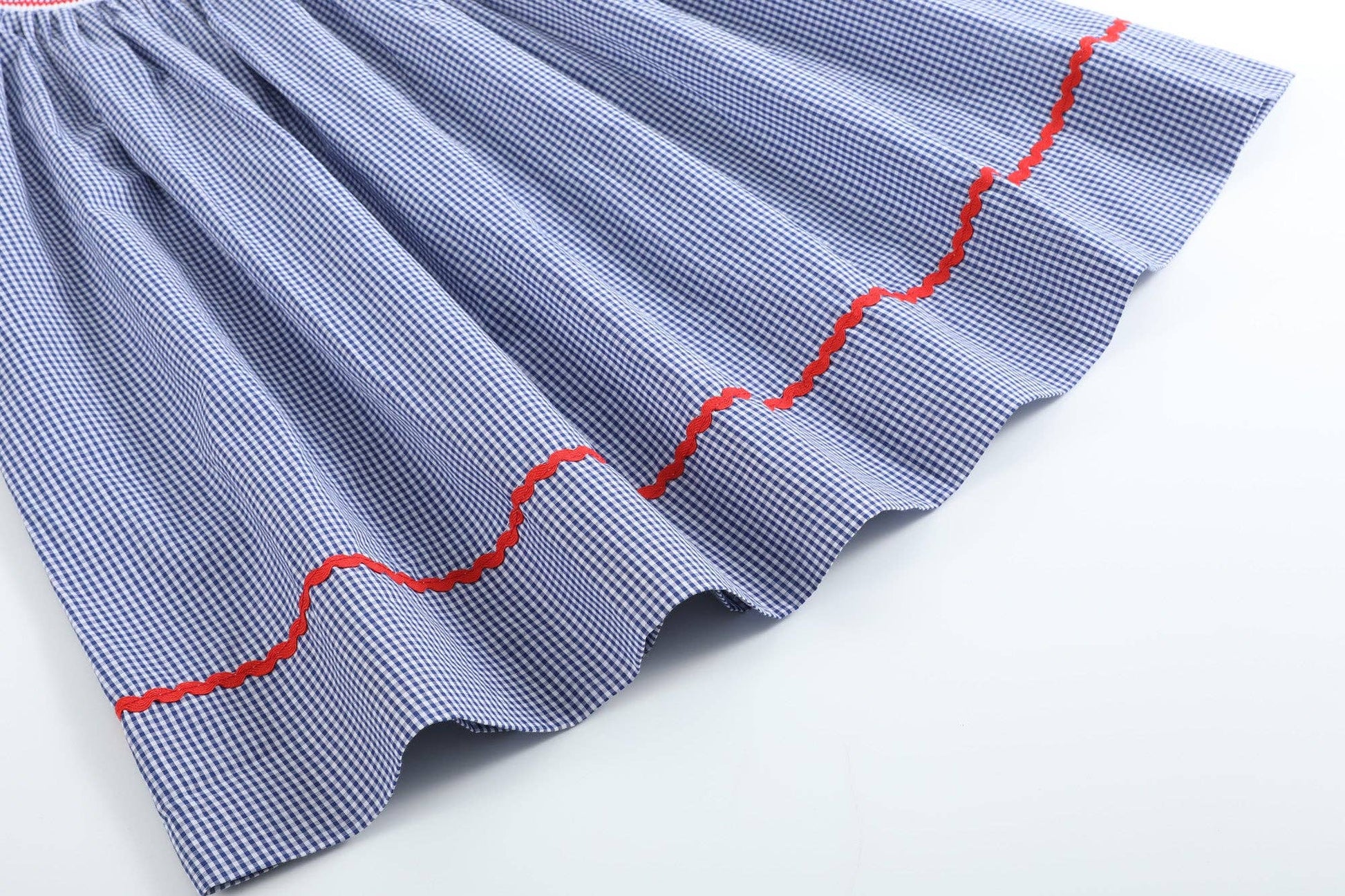 Make your littlest patriot shine in this Blue USA Flag Smocked Bishop Dress. With red trim and embroidered flags, she will look extra festive for July 4th. Patriotic and precious, this dress will ensure her cute-factor is off the charts!