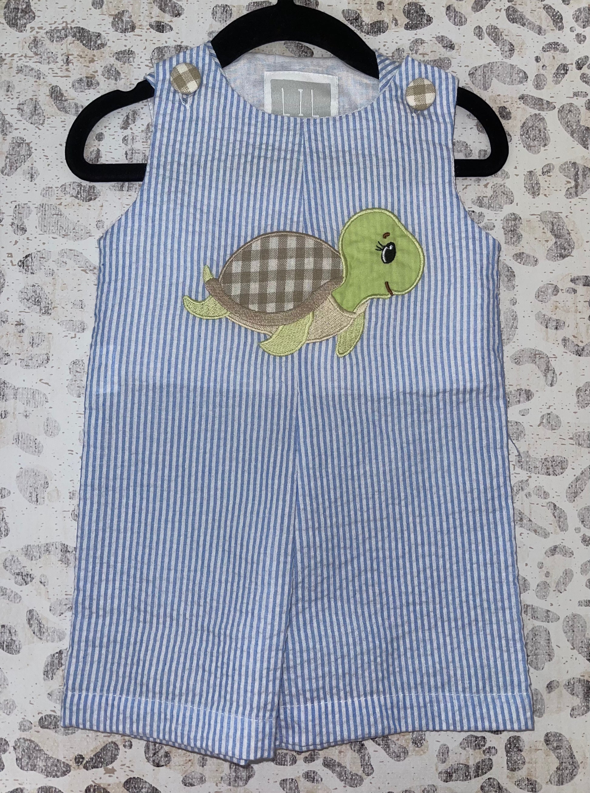 Lil Cactus Turtle Blue & White Seersucker Jon Jon