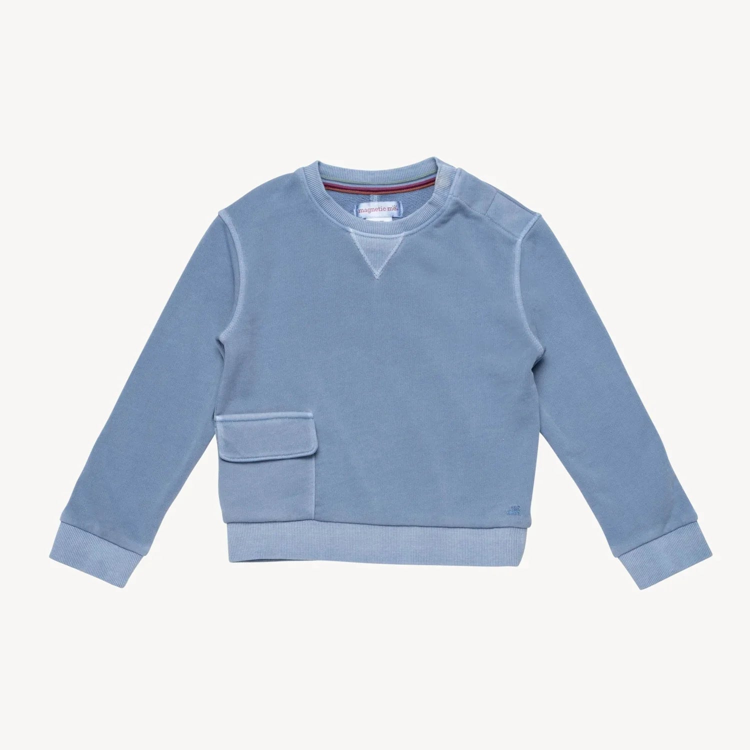 watch our magnetic sweater work its magic with magnetic closures that create an extra wide neck opening so kids have zero issues getting dressed. Parents sit back while kids dress themselves—it's nothing short of miraculous. Made of soft and cozy french terry cotton, it will be a go-to layering piece in your child's rotation throughout the cool months.