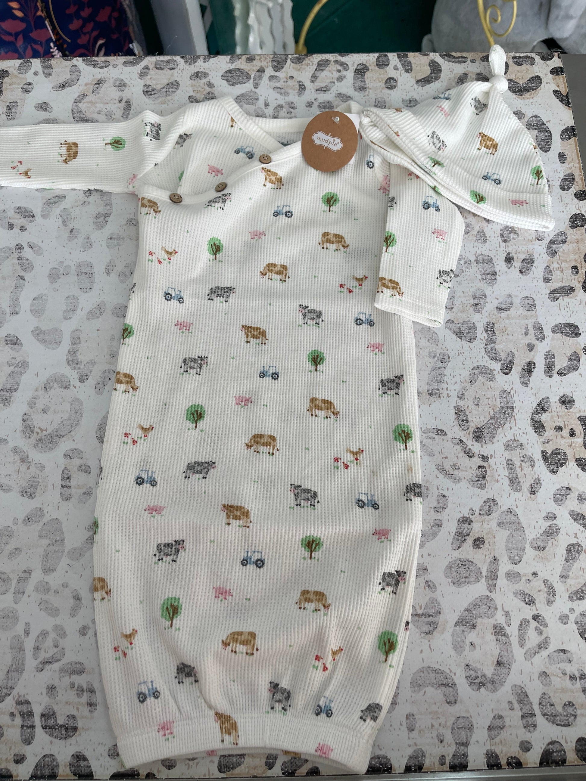 Mudpie Ditsy Farm Print Take-me-home gown and hat