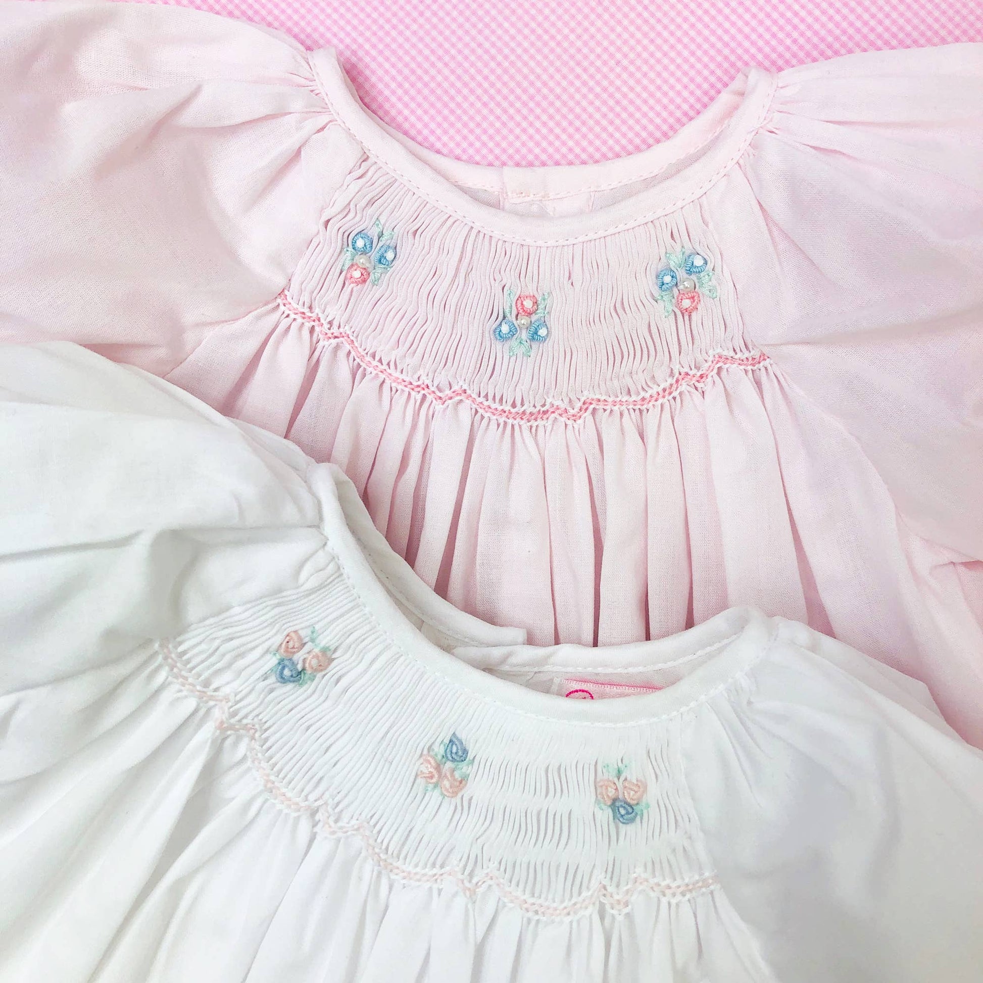 Featuring hand smocking and hand embroidered flowers with dainty seed pearls. The lightweight batiste fabric keeps little ones cool and comfortable and is easy to care for – just machine wash and tumble dry.