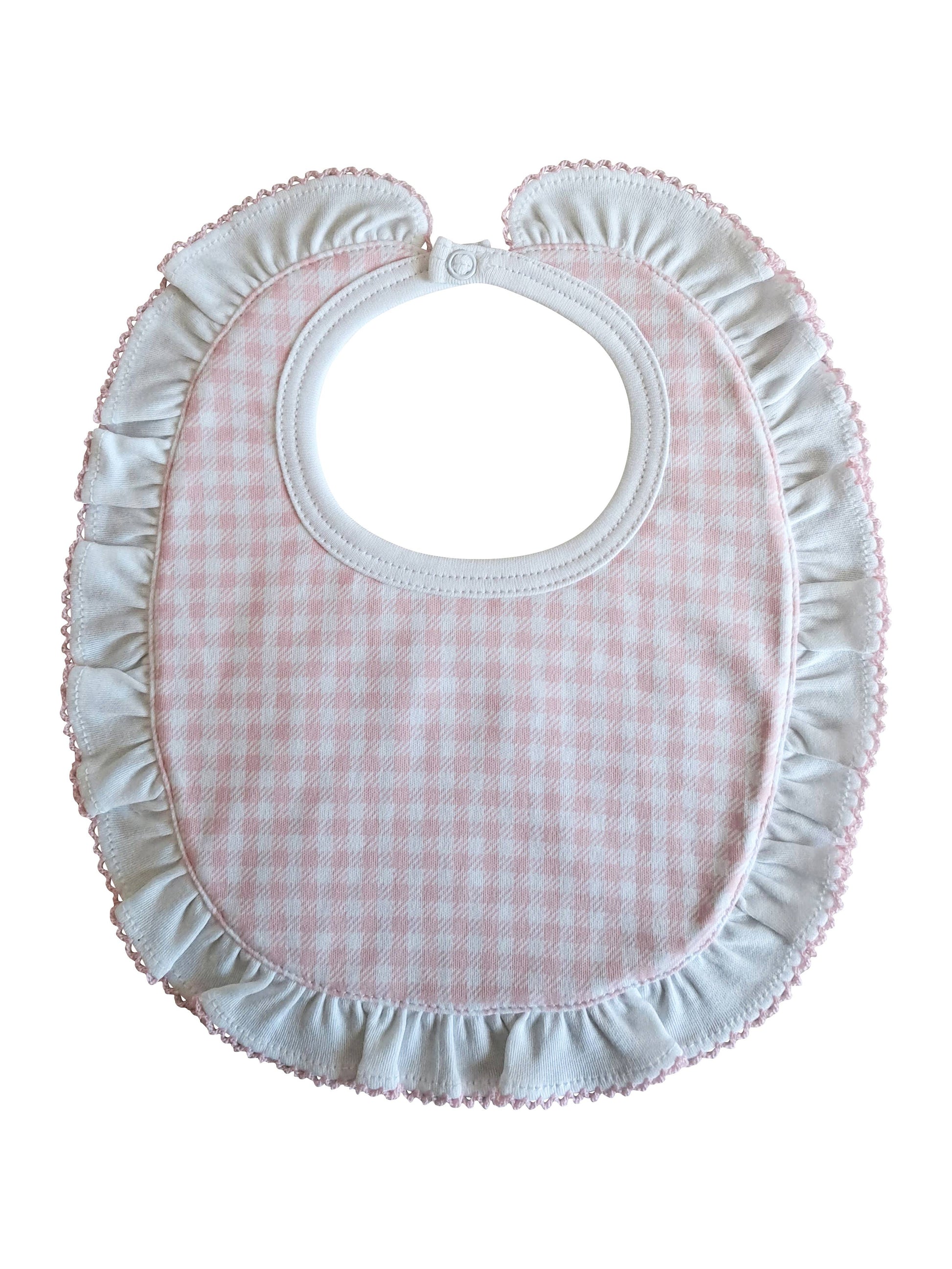 Pink checks 100% Pima Cotton Baby bib. Ready to be monogrammed.