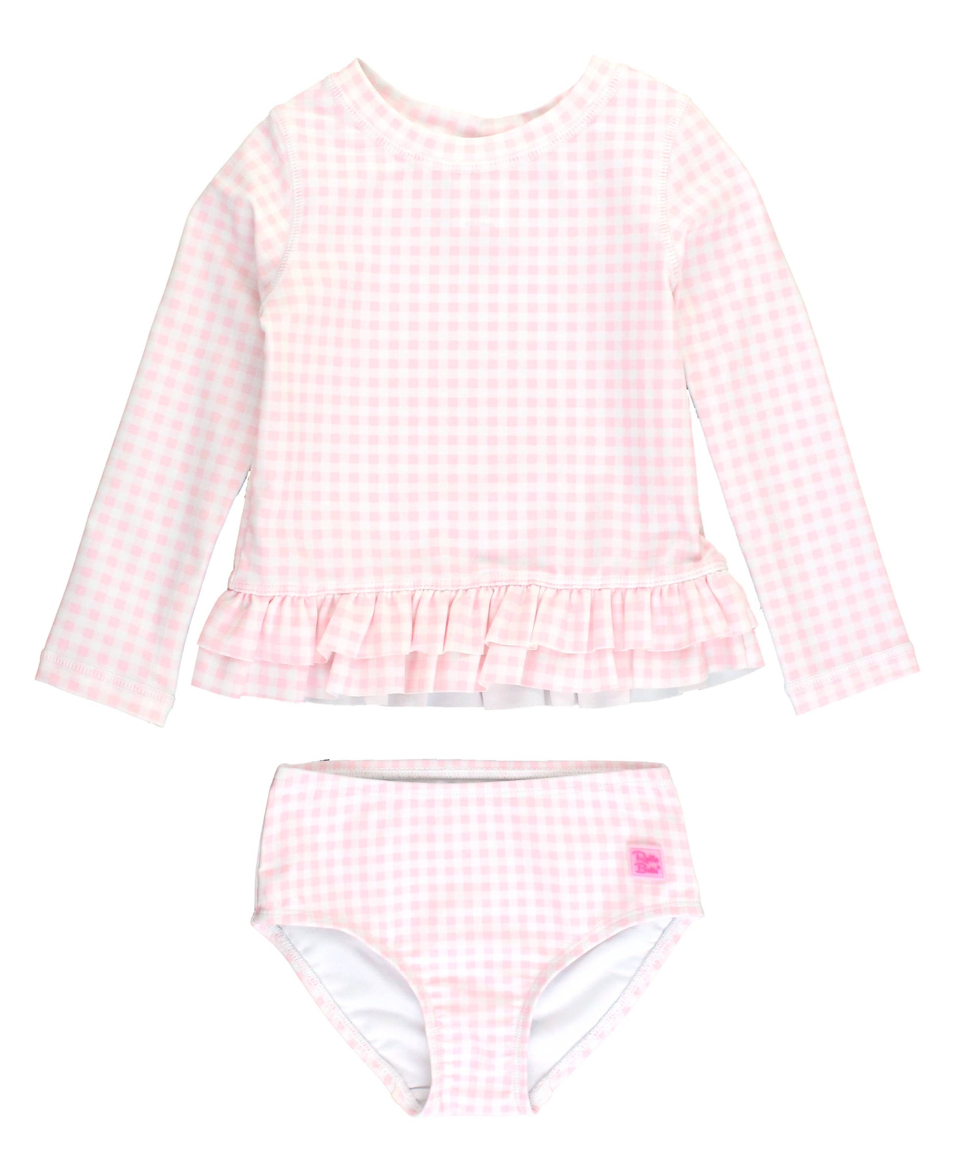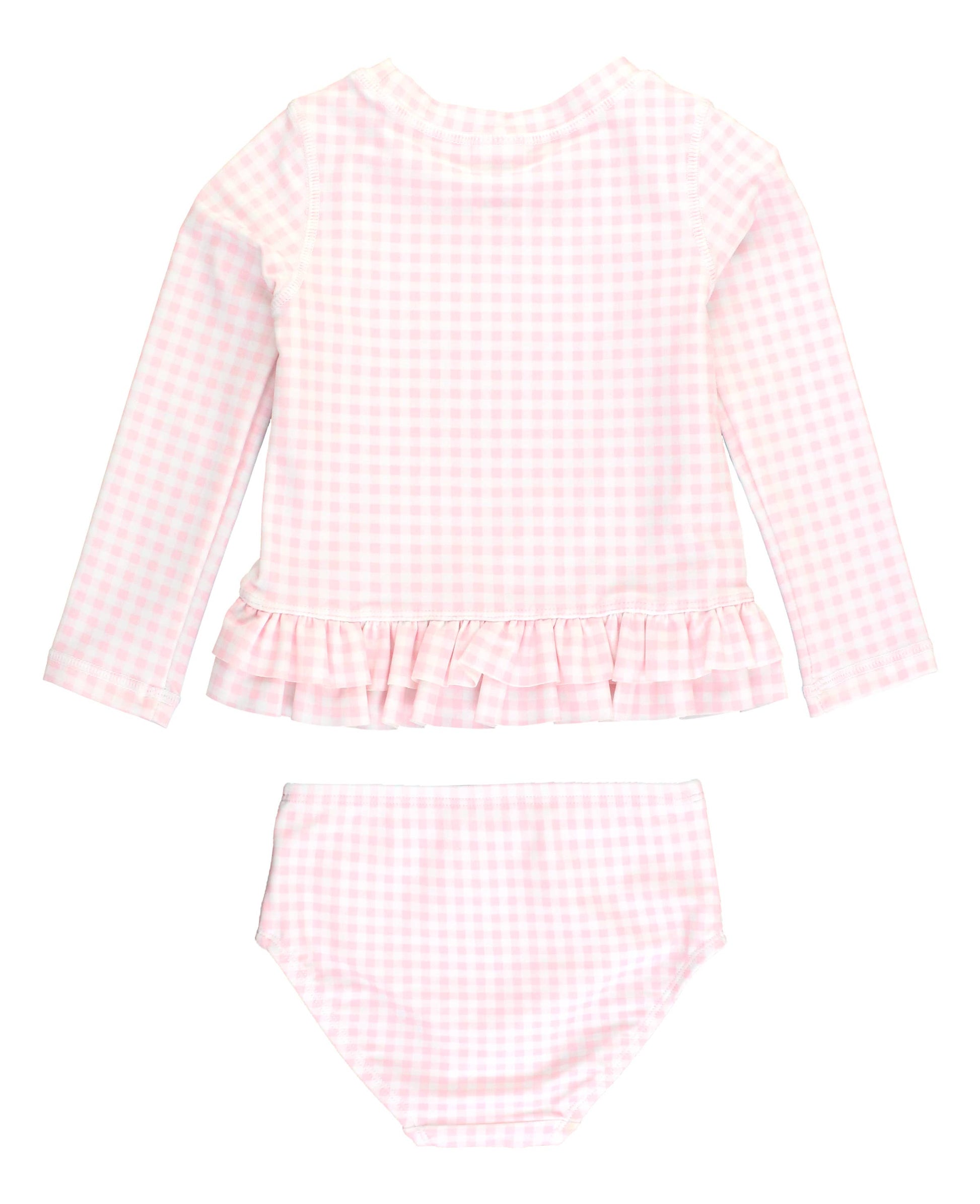 Pink Gingham Ruffle Hem Rash Guard 2-Piece