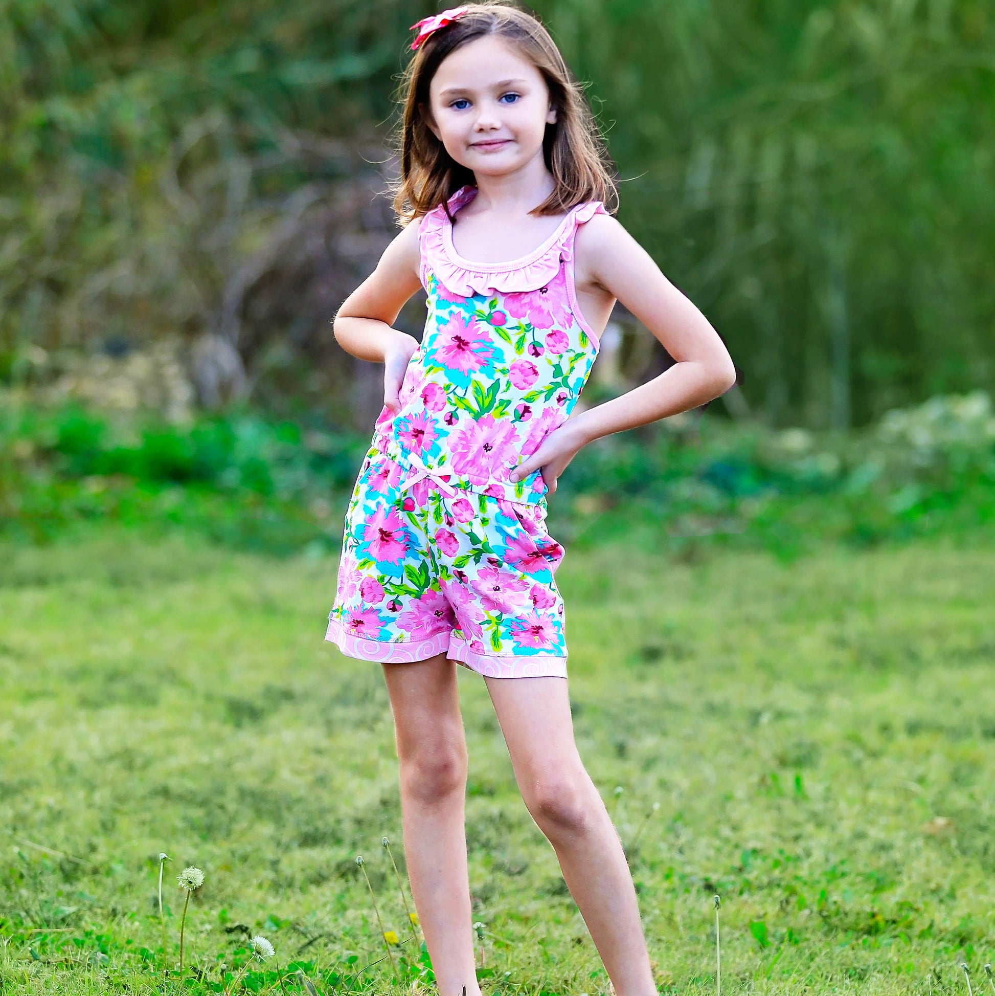 Ann Loren Girls Pink Floral Shorts Jumpsuit Romper