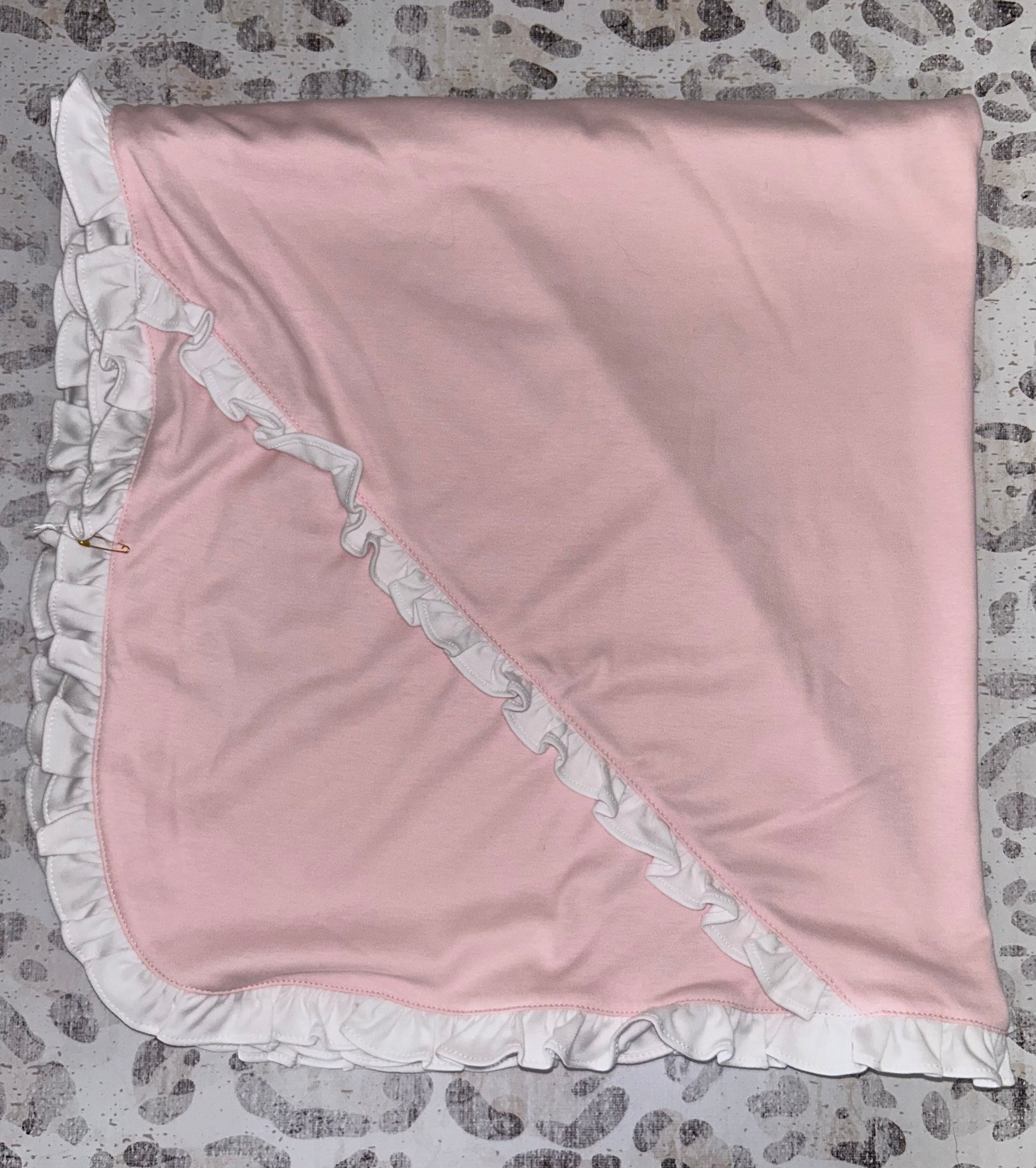 Pink Pima Cotton Swaddle Blanket with White Ruffle Trim