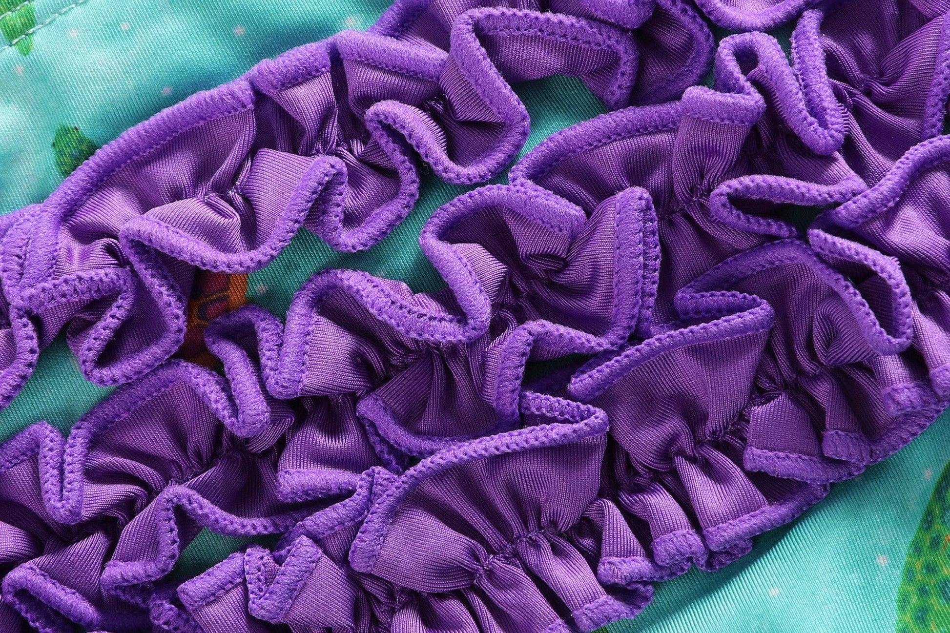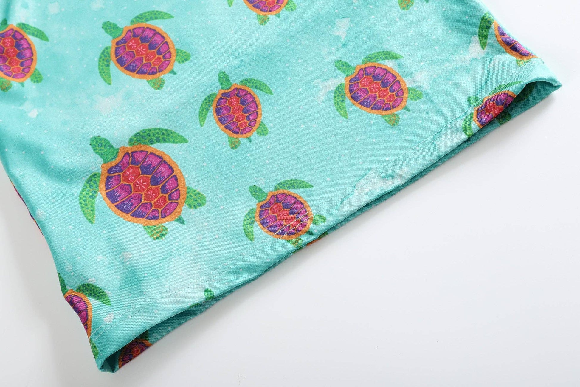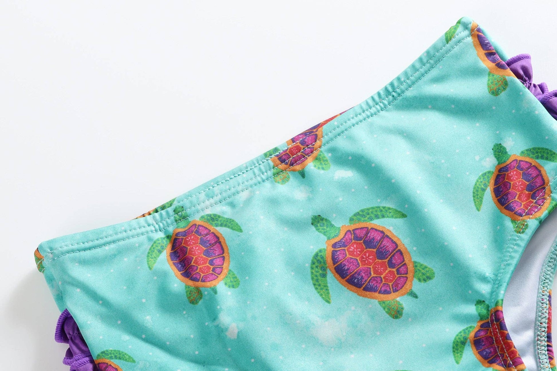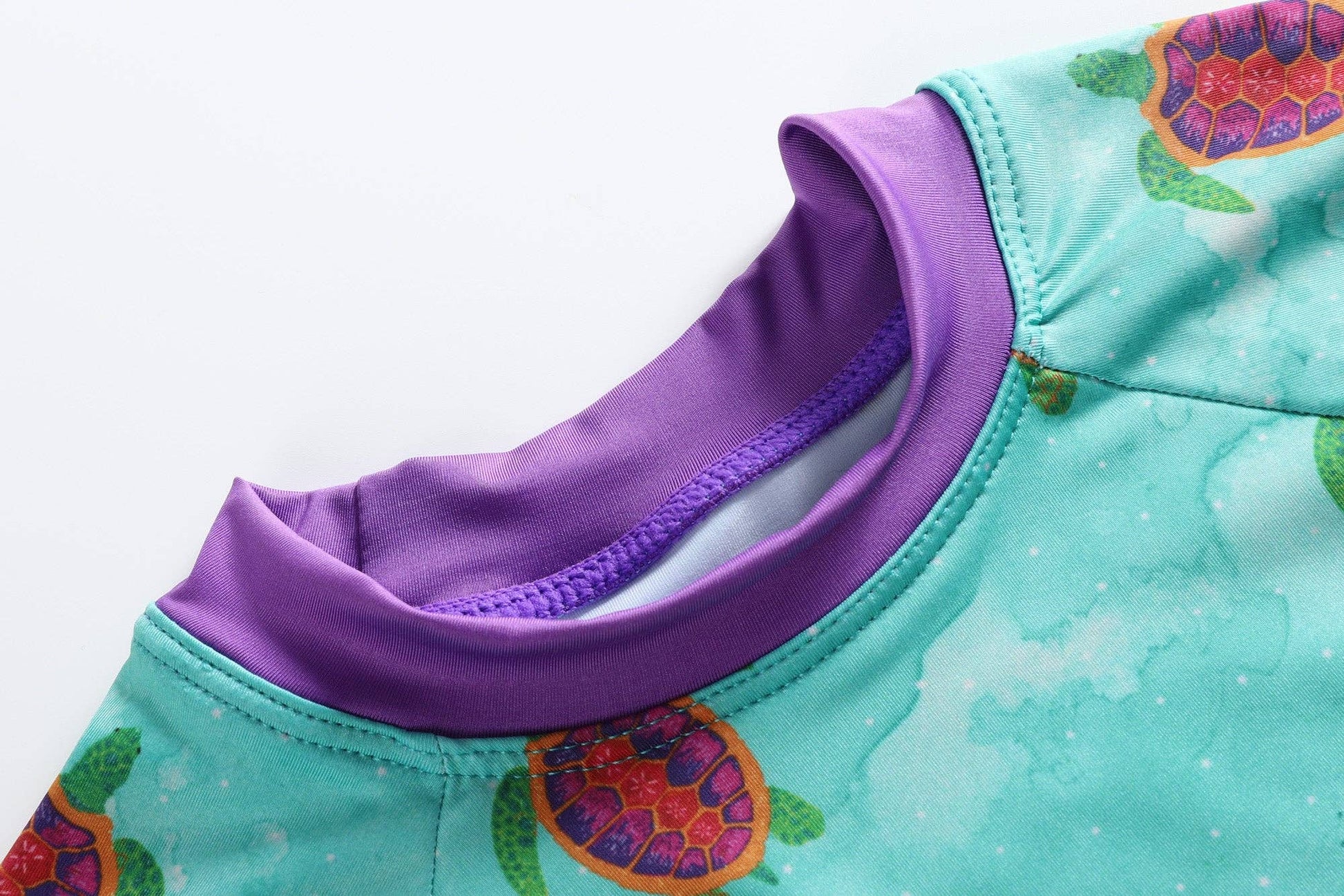 Turtle Time! This cute turquoise turtle print 2 piece set is detailed with sweet ruffles on the bottoms and on sleeves. Your little sweetheart will love splashing around in this cute set and will be ready for summer vacation and fun days playing at the beach. UPF50+