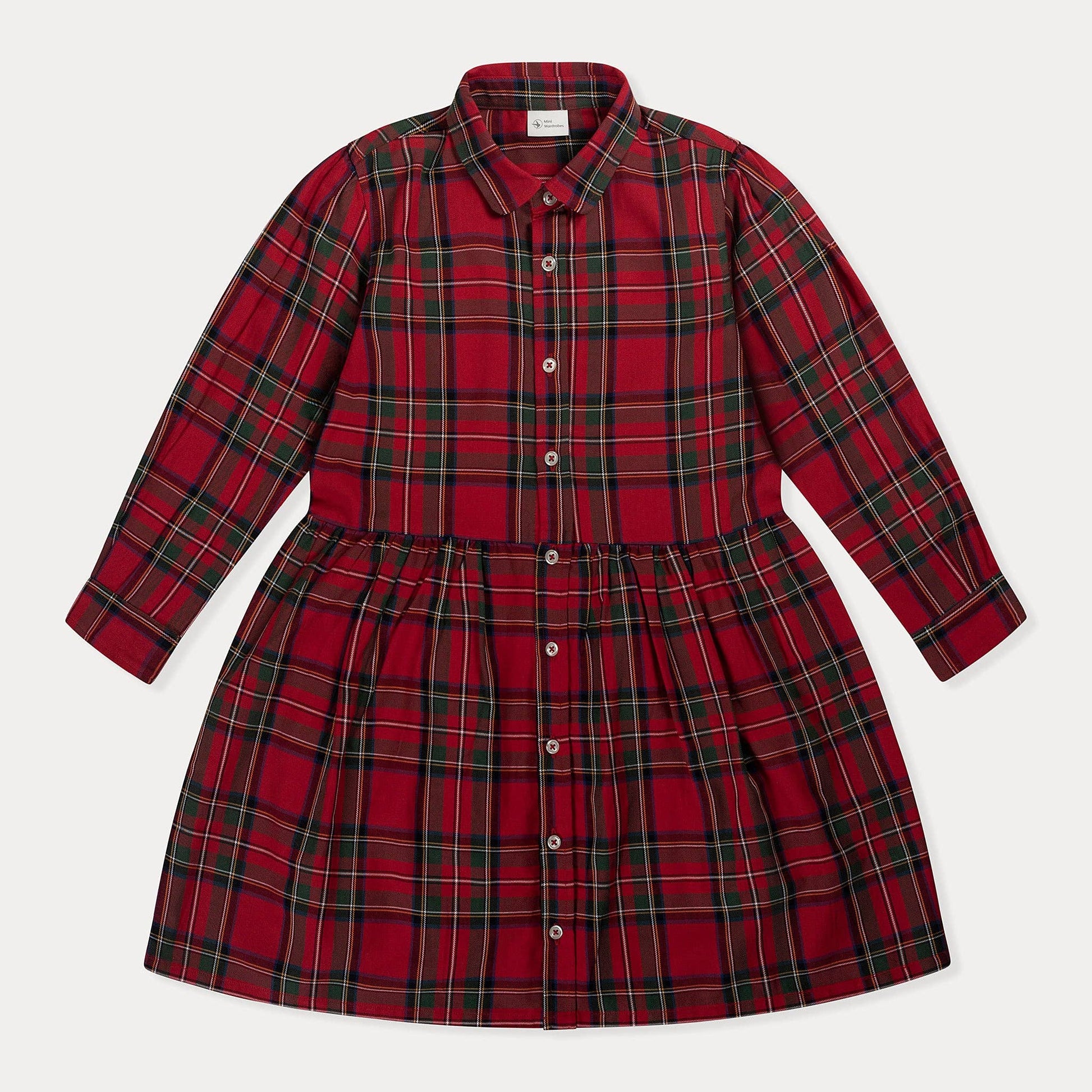 Get your little one ready for the holidays with our Christmas Dress! This red long sleeve girls dress features a royal Stewart tartan pattern, perfect for festive occasions, available in sizes 2T-7 years.