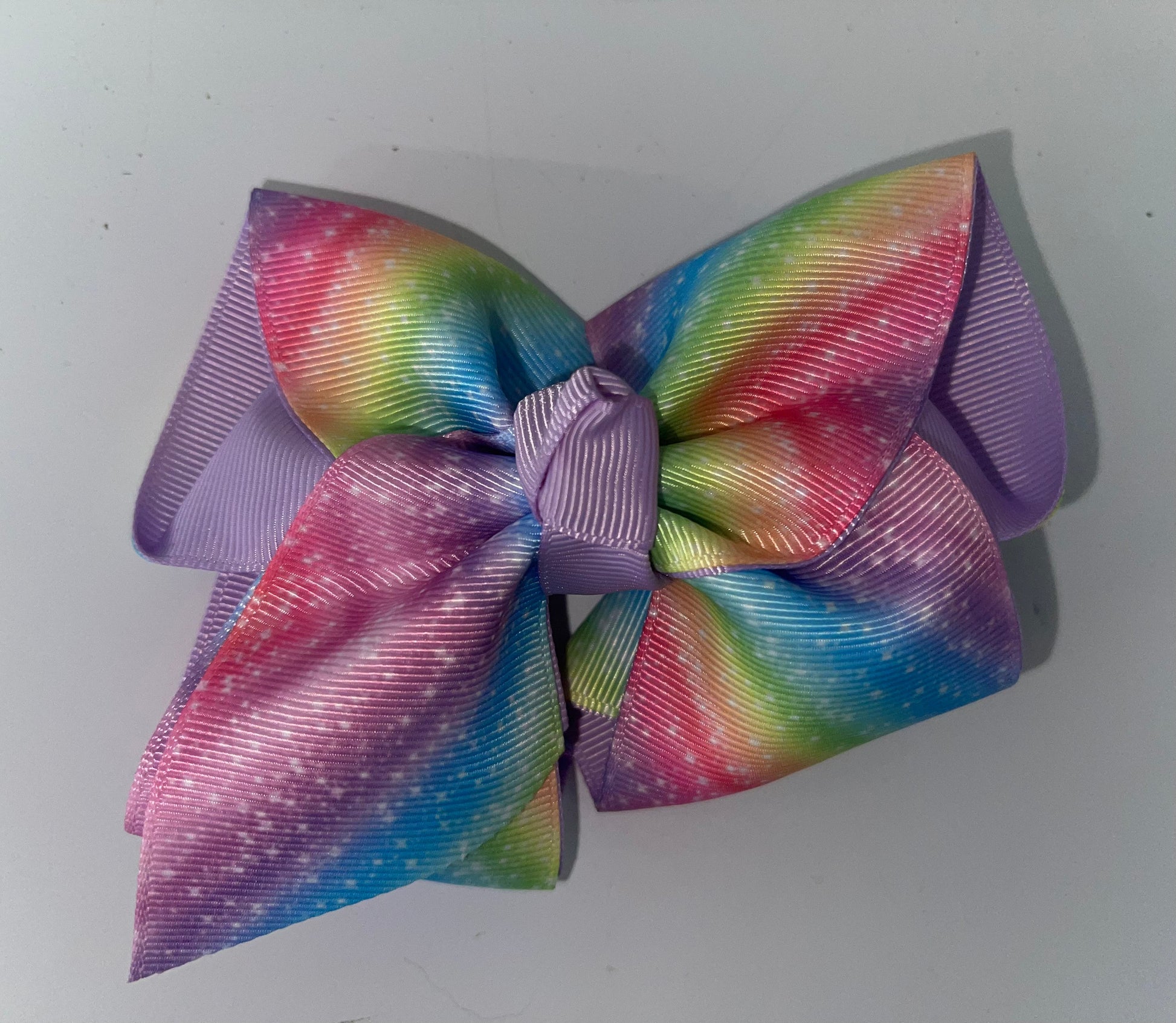 Perfectly layered hair bow. This bow is available in 4 inch with a 2" ribbon width. Sewn and glued to ensure long use wear.