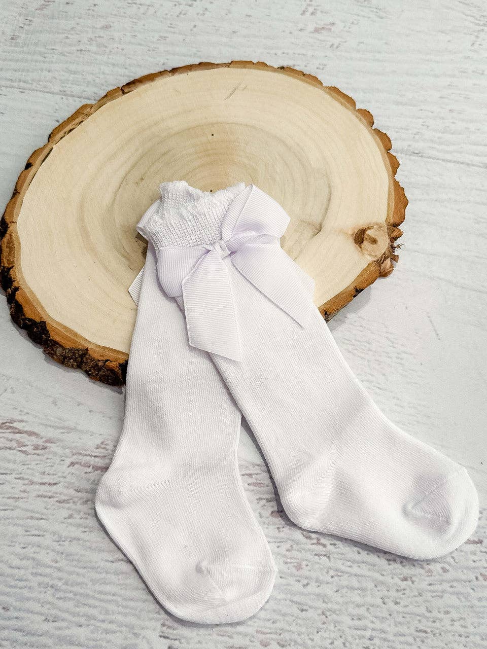 Your little girl will love these stylish White Bow Socks! Soft and snugly, these socks have a sweet bow accent to make them extra special. Perfect for adding a touch of femininity to any look, these socks are sure to bring a smile to your girl's face!