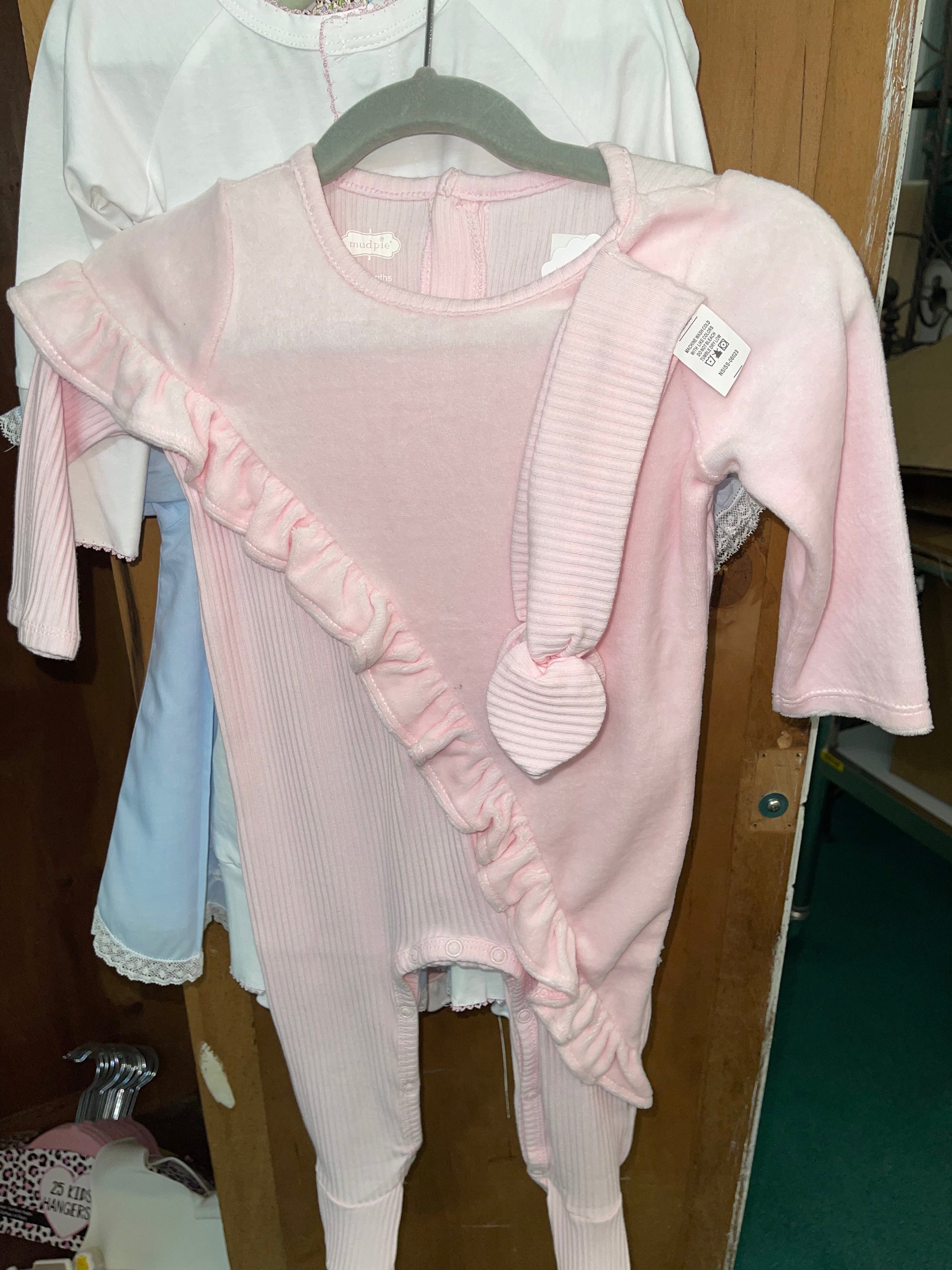 MP Velour Pink Ruffle Footed Sleeper with Headband